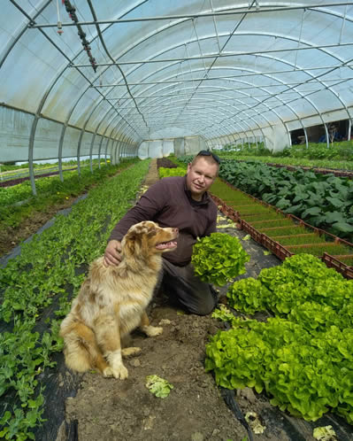 Aujourd’hui il y a sur son exploitation trois salariés permanent, et des saisonniers. Il a été également amené à mécaniser mon exploitation, et à se doter de nombreuses serres. Il fournit marché de plein air et de nombreuses AMAP.